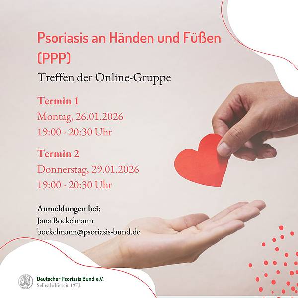 Da die Teilnehmeranzahl begrenzt ist, bitten wir Sie um eine verbindliche Anmeldung bei Jana Bockelmann unter: bockelmann(at)psoriasis-bund.de